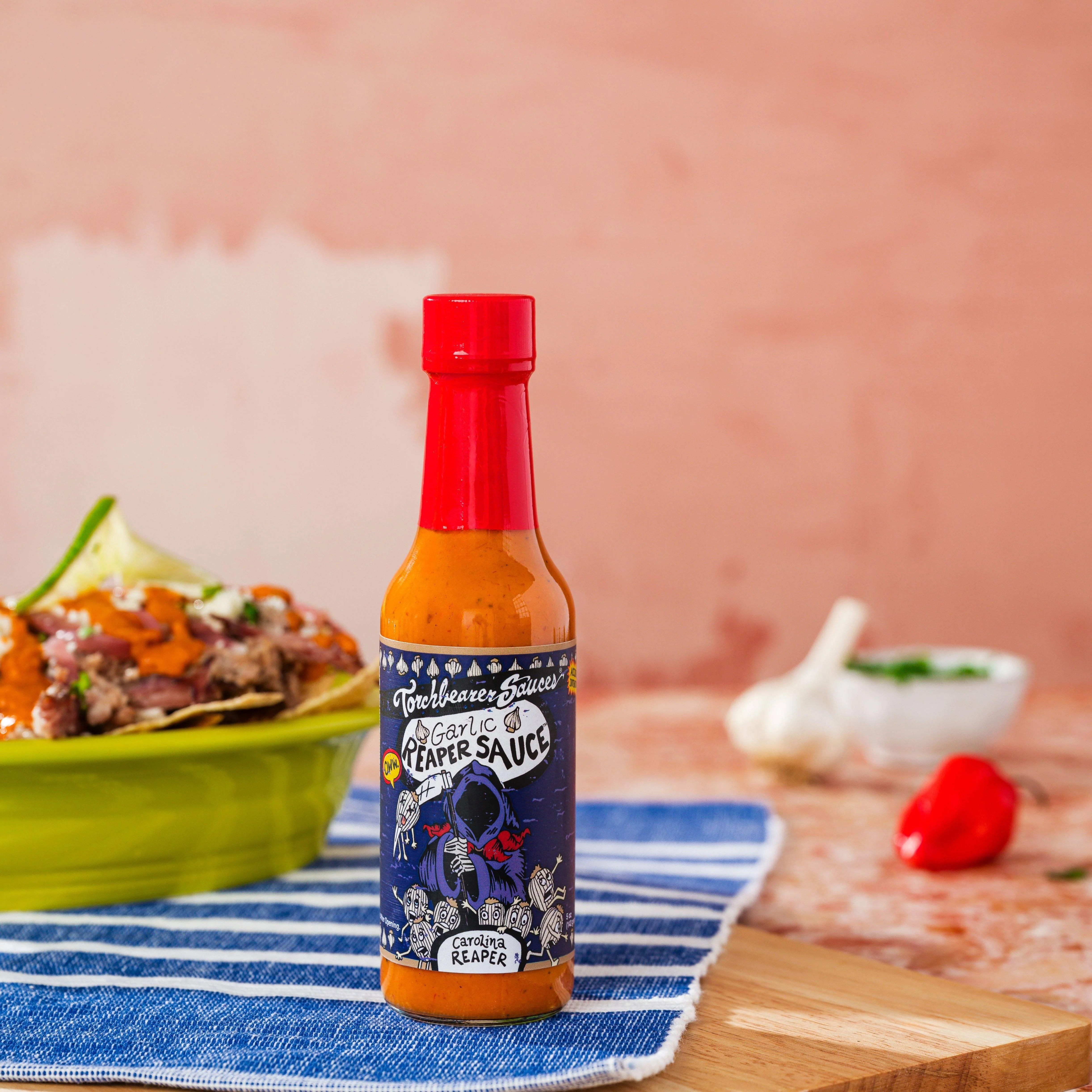 (Featured on Season 8 of Hot Ones) As our biggest sauce of 2019, the Garlic Reaper is quite the showman. The first ingredient in this hot sauce is Carolina Reaper and the second is garlic. The result; both HEAT and FLAVOR. The Garlic Reaper is unlike anything you've ever had, with its creamy texture from a rich oil base and just enough savory spices to round out that garlic. Some would say it’s the best pizza sauce EVER but we also love it on burritos or as a pasta sauce. It can even make a great marinade or sandwich topper for those who can handle it. Order a bottle (or case!) of the Garlic Reaper. We promise you will not regret it.