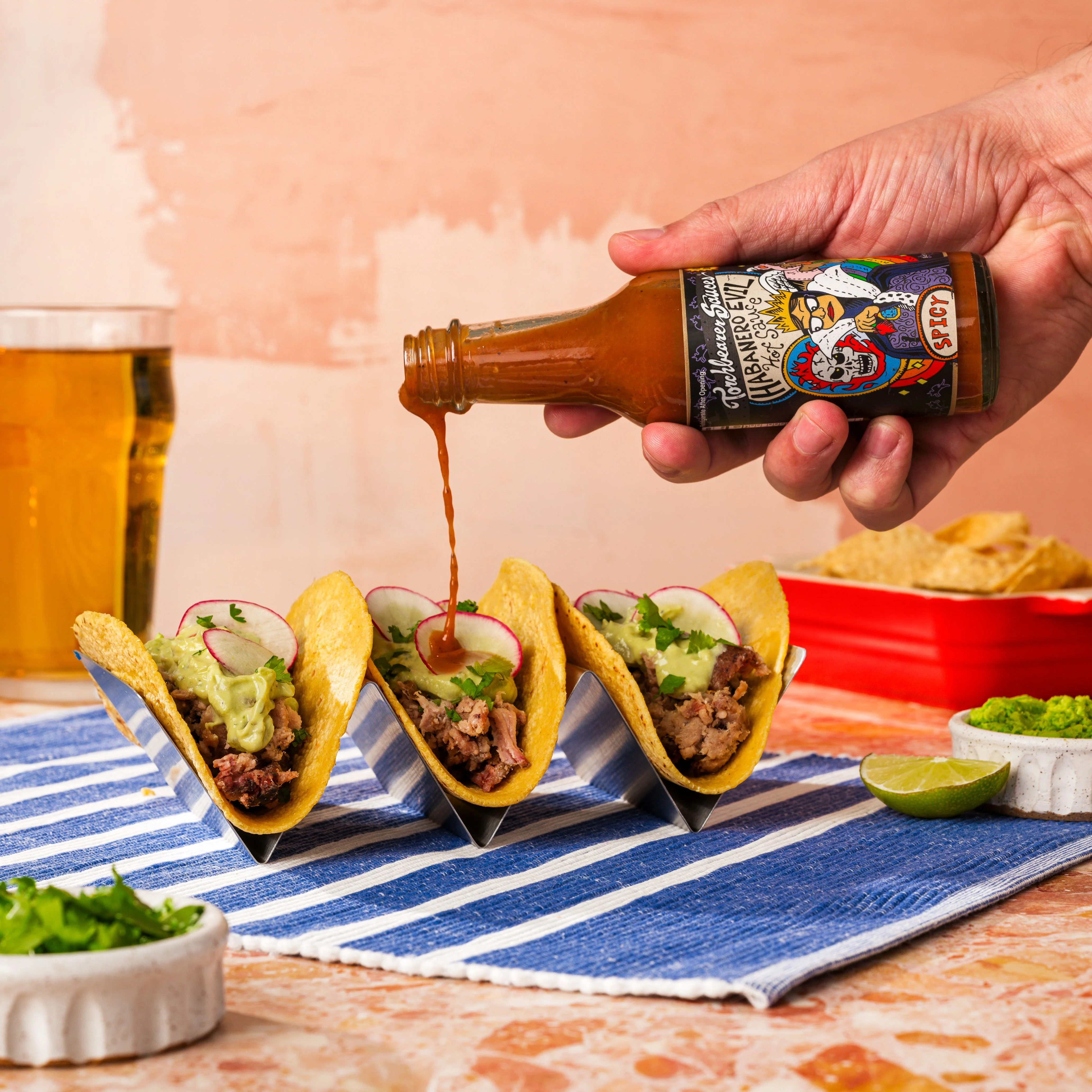 Habanero Evil is an approachable mid-level hot sauce made with habaneros, vinegar, onions, and garlic. It's well balanced in flavor and heat and works well as your "everyday hot sauce" so feel free to shake it all over eggs, sandwiches, tacos, pasta, burgers, salad, etc. The garlic and onion flavors really shine thru and make Habanero Evil great for a marinade for shish kabobs and chicken as well.