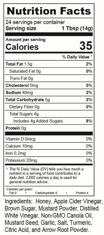 Honey mustard the way it should be; real honey and real mustard. This all-natural sauce is the perfect companion for your fresh salad or sandwich but also is a great marinade for pork or chicken. Your kids will be eating all their veggies now and you can feel good that it’s actually healthy too! Corn syrup? We don’t need no stinking corn syrup!